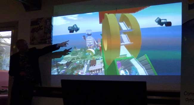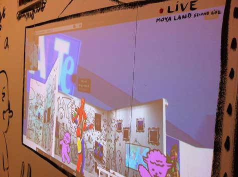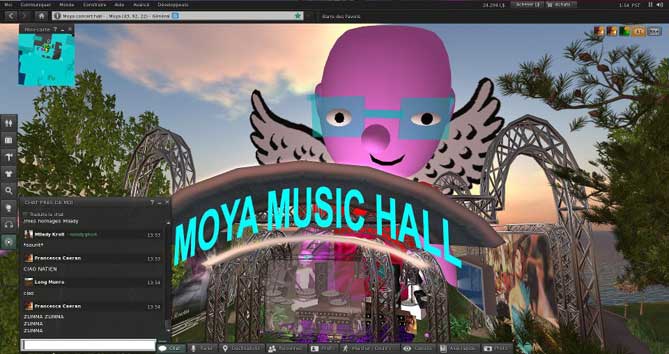 | Sur l'écran en direct sur le Moya land de Second Life | ||||