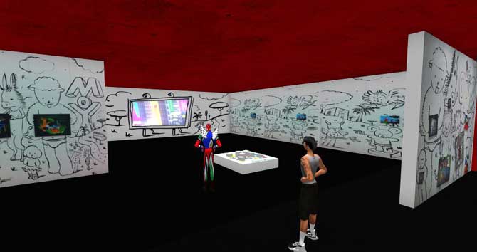 | une image du film tourné dans Second Life pour l'exposition "Moya Sinicropi" Double Je(u) | |||||||||