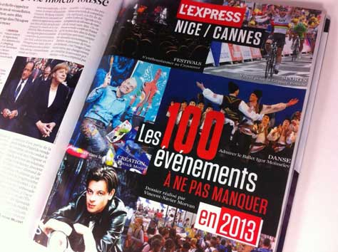 Dans l'express - Patrick Moya donne sa selection des expositions à voir pour 2013 entre Nice et Cannes