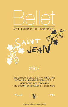 Présentation du vin "Saint Jean" de Bellet (étiquette