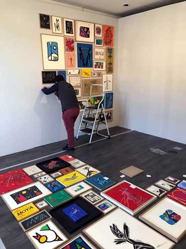installation de l'exposition "le cas Moya" à la galerie Lympia de Nice (espace culturel departemental)