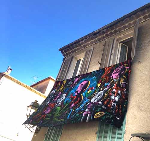 19 janvier Restauration de la peinture murale aux Puces de Nice pour l'inauguration demain matin de ce nouveau spot du street art
