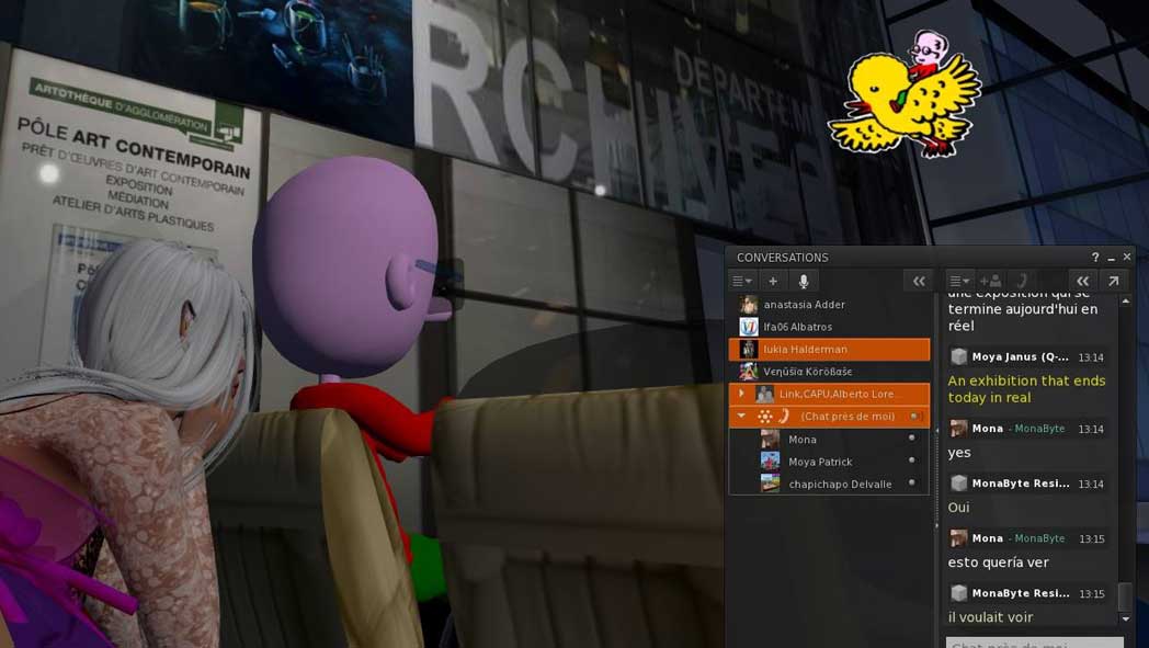 merci à Francesca Caeran (directrice du Moya Hall de Second life)