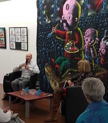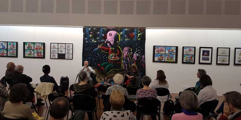 lors du vernissage virtuel de l'exposition à l'Artistique