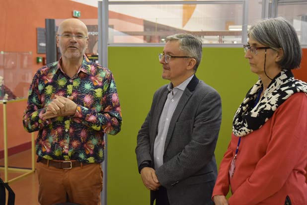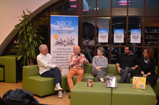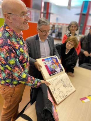 | Patrick Moya, Jean luc Gagliolo Délégué à l'Éducation, à l'Identité, au Livre et à la lutte contre l'illettrisme et Françoise Michelizza directrice de la BMVR | ||