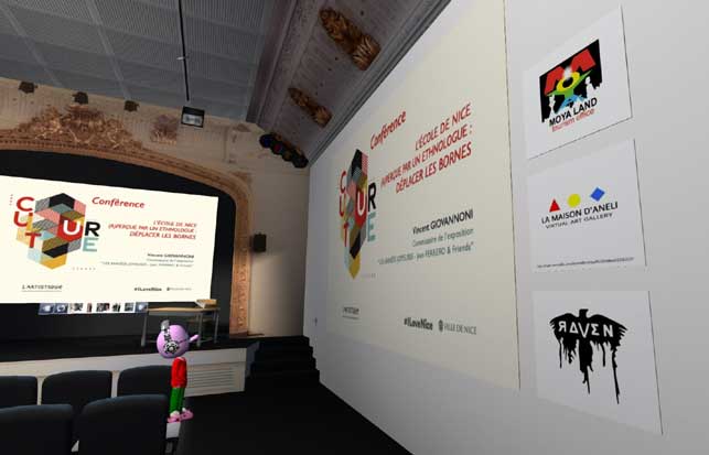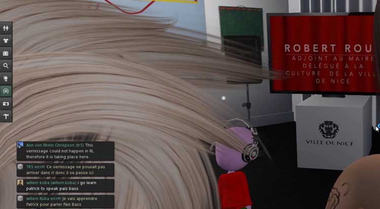 En présence de nombreux internautes via leurs avatars. Eric Léon Conservateur à l'artistique et des membres de l'équipe, Mario Gerosa journaliste et critique italien, Vincent Giovannoni conservateur en chef au Mucem, Fabrizio Bianconi journaliste, Florence Canarelli, , Ann Von Rhein, Rosanna Galvani, Enrico Taddei, Baptiste Lefebvre, David Ribet, Chaim Plantivaux, Guadalupe Vázquez, Dominik Undak, Aneli Abeyante, Chapichapo Delvalle, , Celine Lisian, Isabella Infinity... et d'autres non identifiable