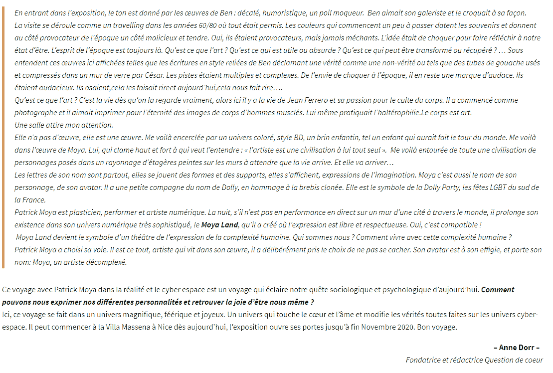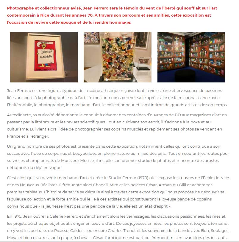 Article à propos de la prochaine exposition à l'Artistique Donation Ferrero à Nice