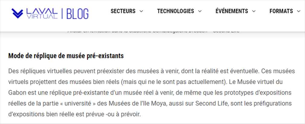 déroulée sur le Moya Land de Second Life et le frère était en
