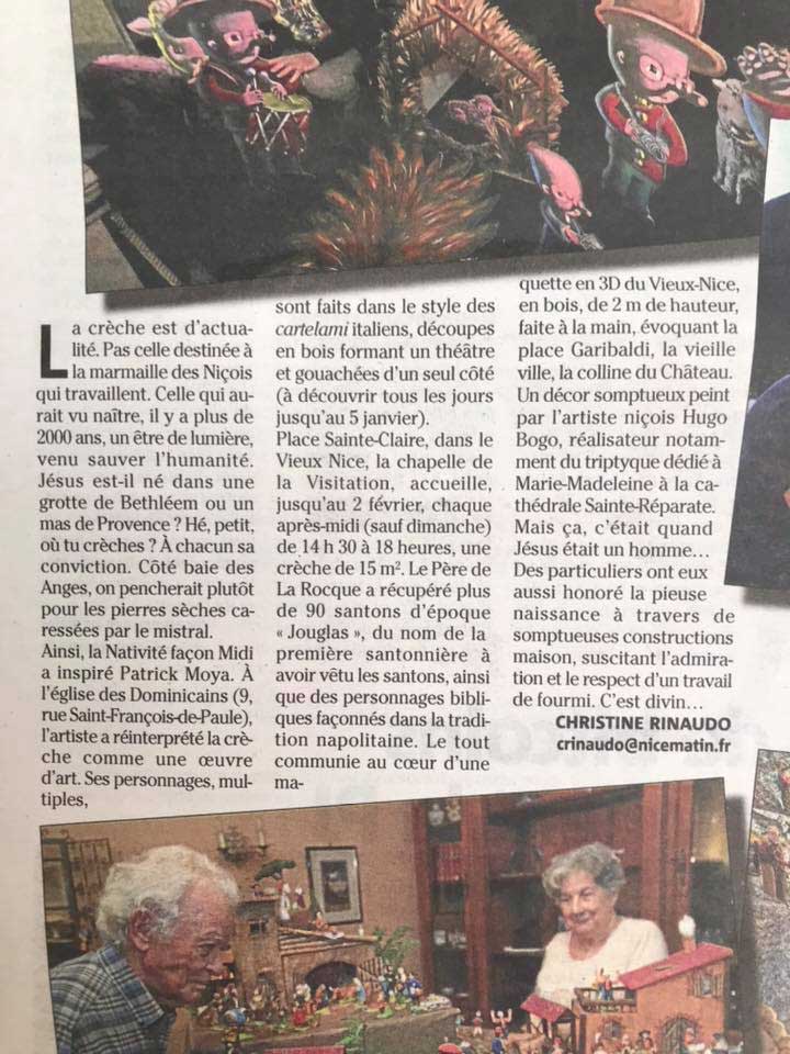 24 dec - Nice Matin - un article de Christine Rinaudo à propos des crèches
