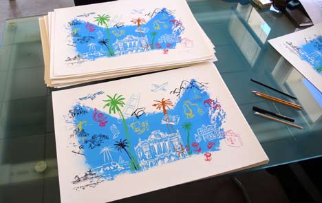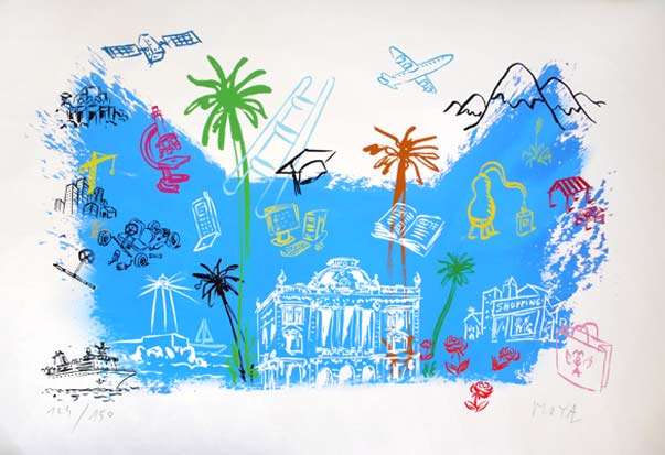 Les micro bus décorés par Moya en circulation à Cannes sur la Croisette et la rue d'Antibes