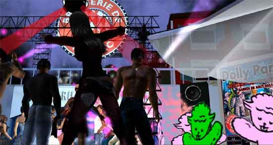 | La soirée Dolly Party pour Fight Aids Monaco dans l'univers virtuel de Moya de Second Life sur les grands écrans de la Brasserie de Monaco | |||||||