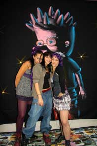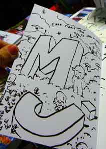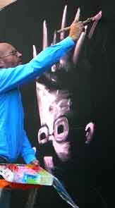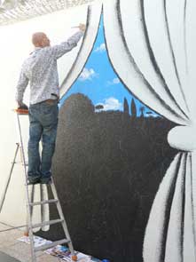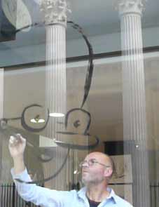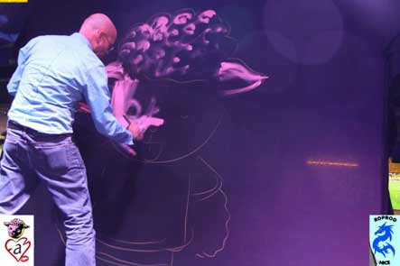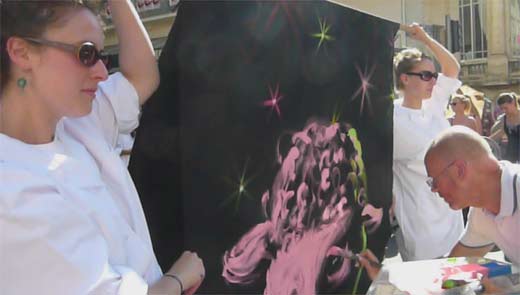 | peinture en live à reculons sur les blouses de "Clowns z'Hopitaux | ||