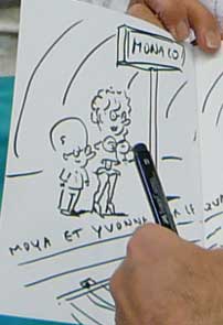 | Chez le collectionneur Mario Bavato - un dessin pour Mario "Mario transporte le Moya land" | |