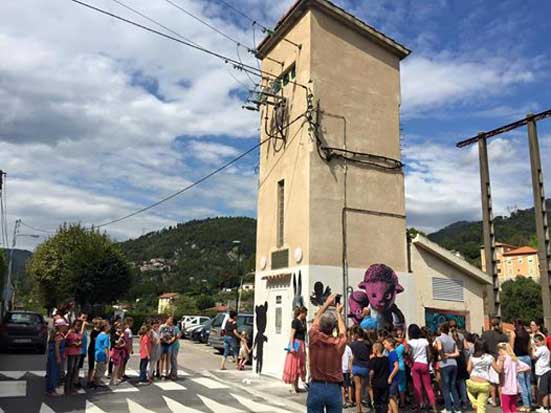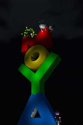 la poser au sommet de la Moya Tower puisque le thème du festival