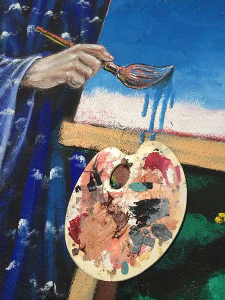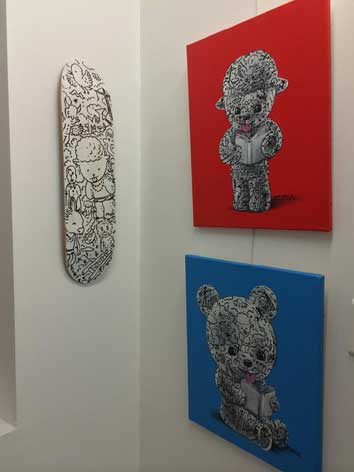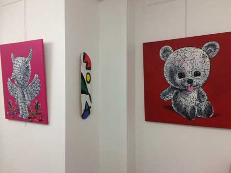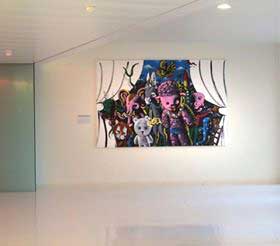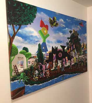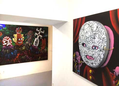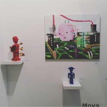 5 toiles réalisées lors de l'inauguration de l'exposition Moya