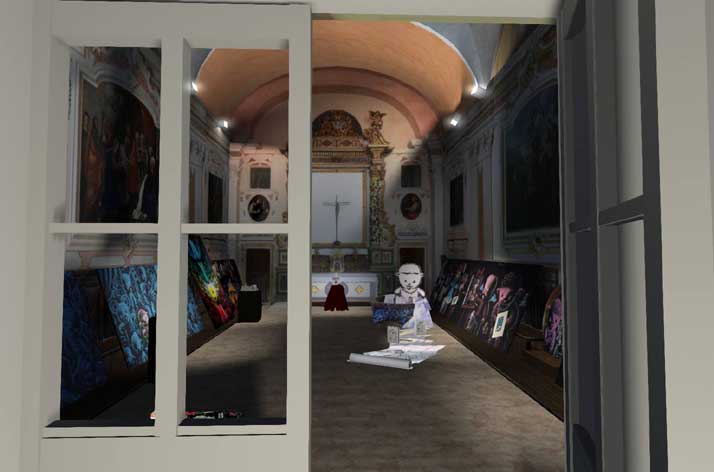 | reflexion dans le modèle virtuel de la chapelle afin de préparer l'exposition | ||