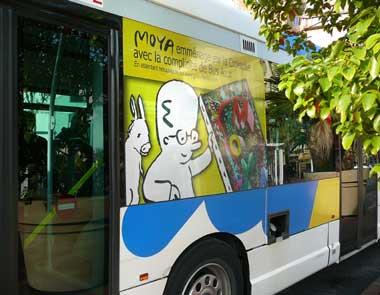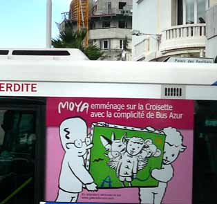 Campagne sur les bus Bus Azur (Véolia) pour annoncer le Bus Moya