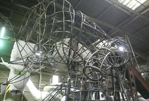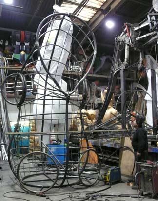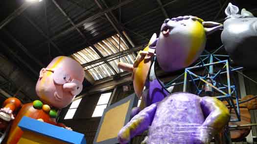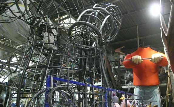 le char en préparation à la maison de Carnaval dans l'atelier du carnavalier Cédric pignataro (Nice Festivités) |