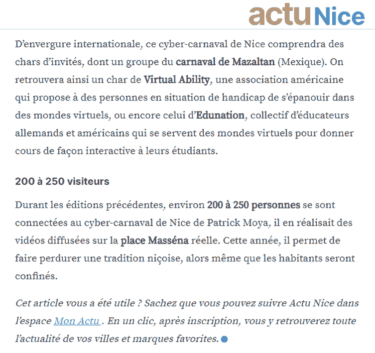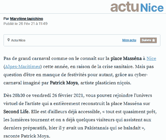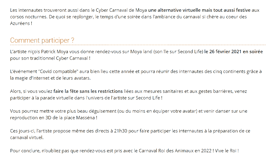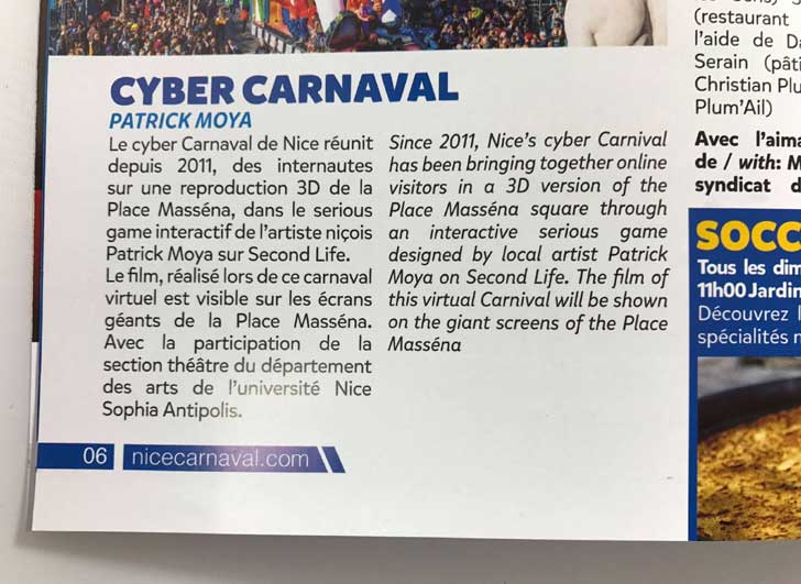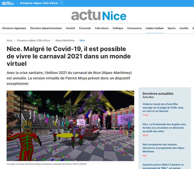 Voir le Cyber carnaval de Nice 2011 dans l'univers virtuel de Moya