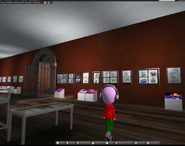 l'écran vidéo avec second life, la machine à masques et les amis de Second Life |