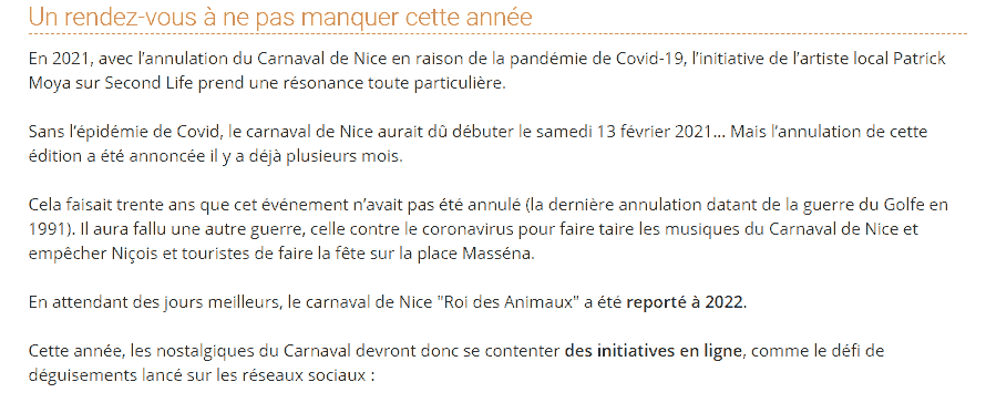 Carnaval de Nice Virtuel sur l'île Moya de Second Life |