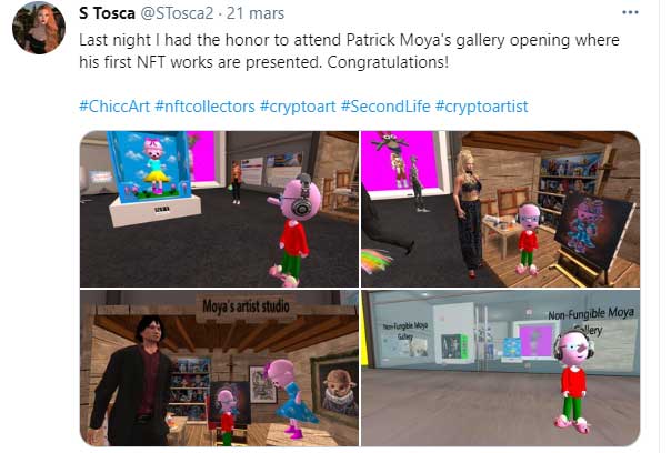 2021 Non Fungible Moya Gallery and ChiccArt gallery NFT opening in Second Life. virtual art since 2007