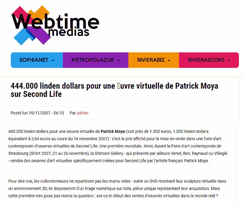 In 2007 Patrick Moya sold virtual sculptures at the strasbourg art fair and in other exhibitions - The collector only had a certificate on paper and a digital copy on canvas. there are still unsold sculptures which are now offered thanks to the NFT.