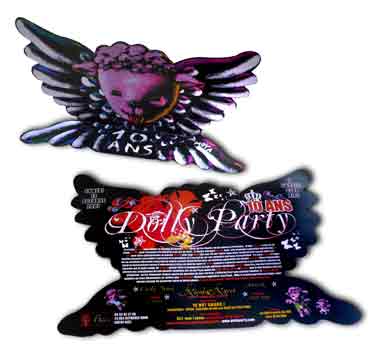 | Toiles, grandes bâches, toiles et dessins pour les flyers des soirées, flyers et films | ||