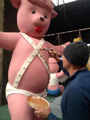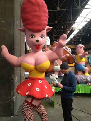 Une grosse tête "Dolly" (d'un précédent Carnaval) au village de Carnaval