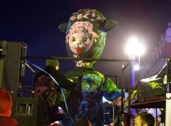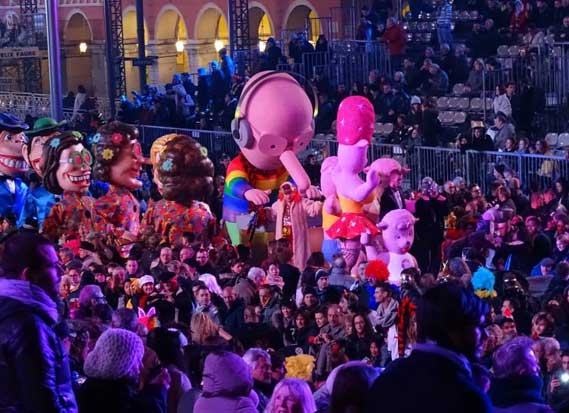 Une grosse tête de Dolly en ville à loccasion du Carnaval de Nice - au Bistrot d'Antoine