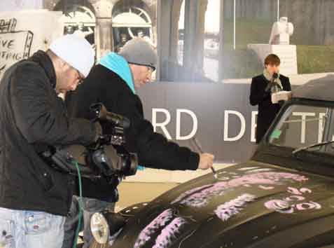 et réalisation d'une peinture murale le soir du vernissage