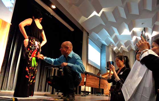 Antibes - peinture en direct sur une robe de la collection Chantal Helenbeck