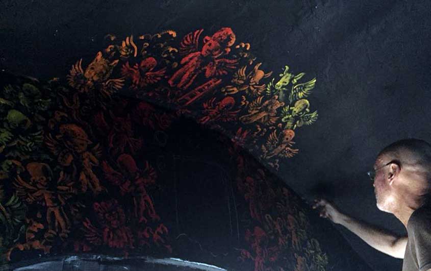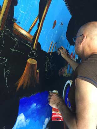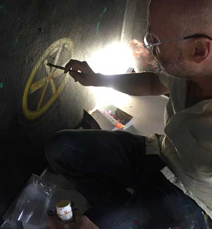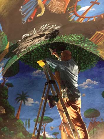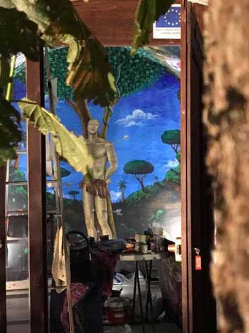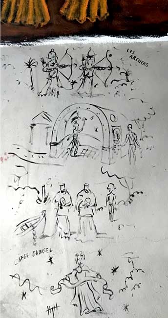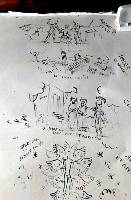 Mai 2018 - Maquette grandeur nature à l'atelier, pour le projet de "fresque" destinée à la chapelle Saint Sebastien du Mas