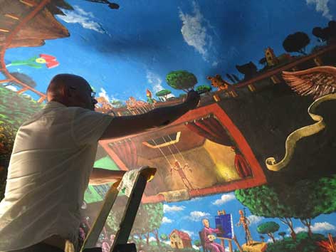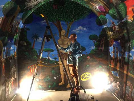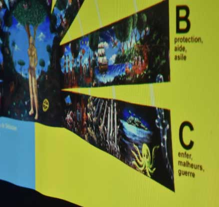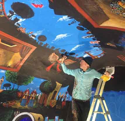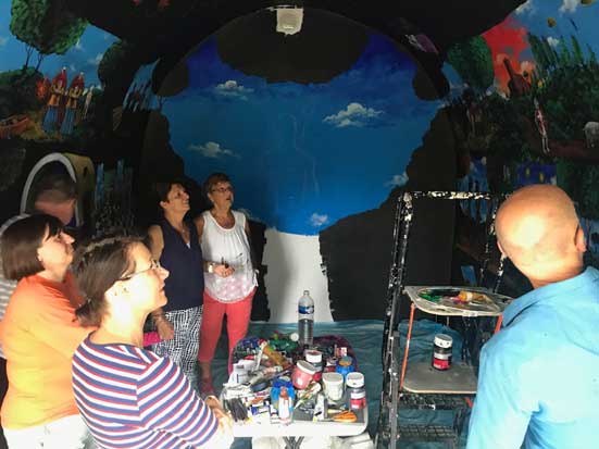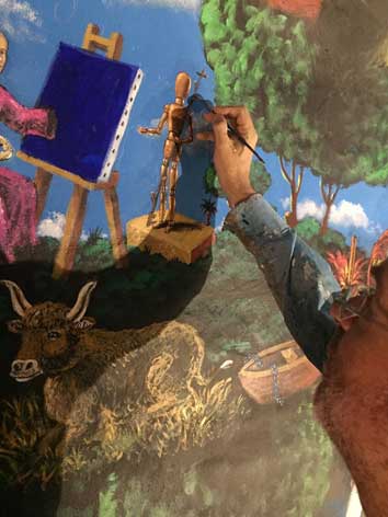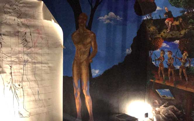 présence de l'artiste qui explique son interprétation de l'histoire de