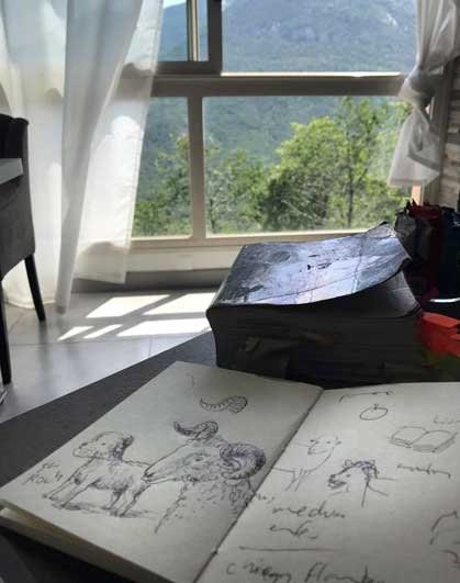 | dessins préparatoires au Mac Café du Mas | Suite du travail |
