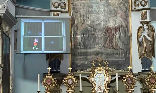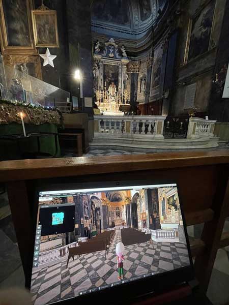 visiteurs japonais passent dans le jumeau numérique de l'église