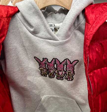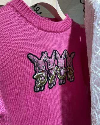 le creazioni sfoggiano un gioioso coniglio rosa in omaggio al