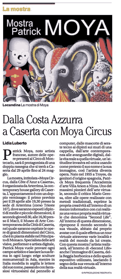 | http://www.artribune.com/mostre-evento-arte/patrick-moya-dolly-mon-amour/ | page culture de la stampa | ANSA | ||