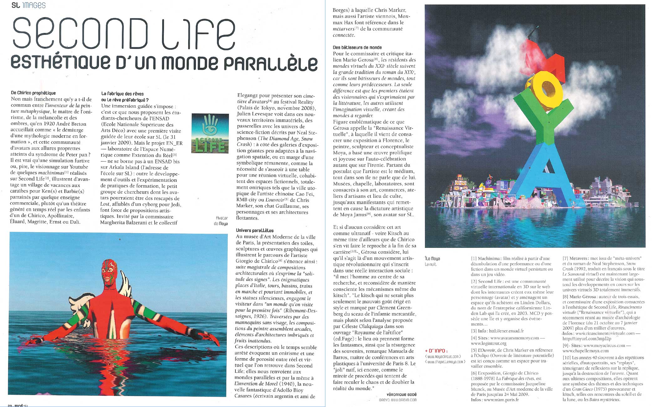 Mars 2009 Article sur Second Life dans la revue MCD Musiques et cultures digitales.