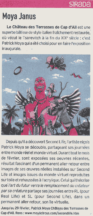 Mars 2008 DBC radio TV suisse interview de l'avatar de Moya en direct de Second Life dans l'émission Live Altitude http://www.wat.tv/video/second-life-moya-janus-iyr4_8a1q_.html