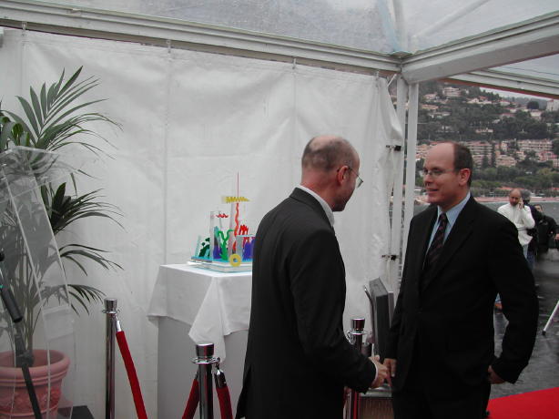 MONACO - Cérémonie drapeau du 19 oct 04 - remise d'une sculpture de Patrick Moya au Palais