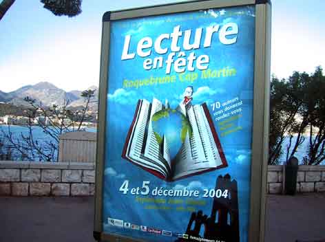 AFFICHE DU FESTIVAL DU LIVRE DE ROQUEBRUNE CAP MARTIN