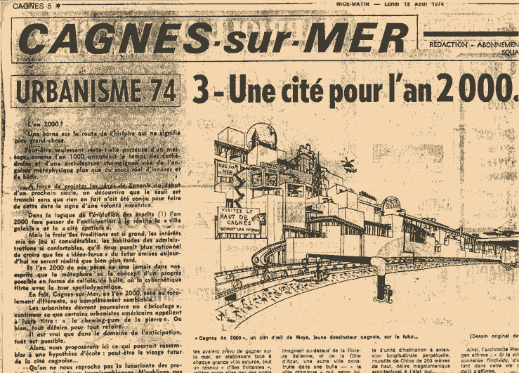 1974 - dessin paru dans Nice-Matin, « une cité pour l'an 2000 », édition Cagnes sur mer (12 août)