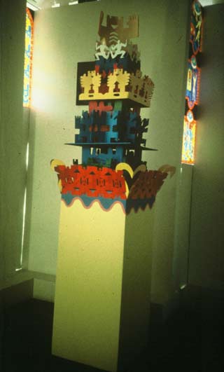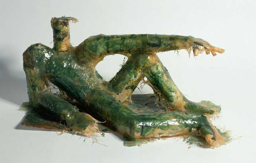 Sculpture peinture vinylique sur carton, papier, grillage et bois
