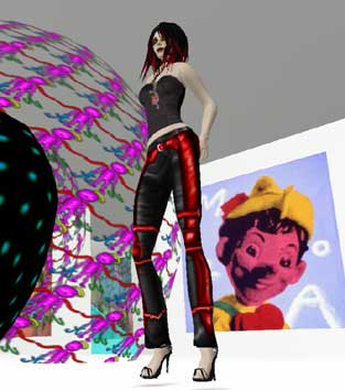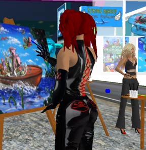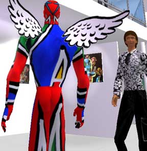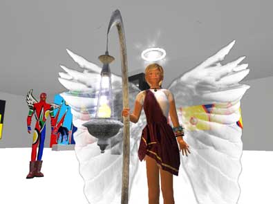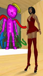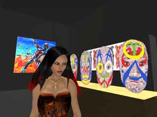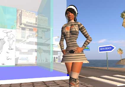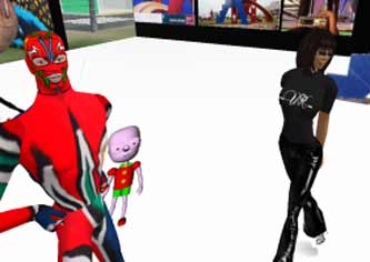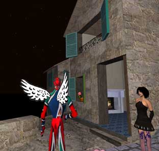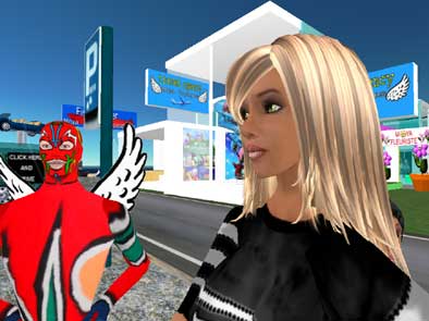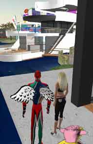 | Moya en compagnie de la doctorante canadienne dans le bureau virtuel | l'avatar de la doctorante | La maison virtuelle de Moya sur second Life | |||