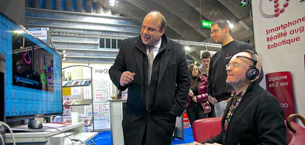 "L'artiste Moya découvre une nouvelle interface "cerveau-machine" présentée sur le stand de notre école CampusID au Studyrama de Nice "