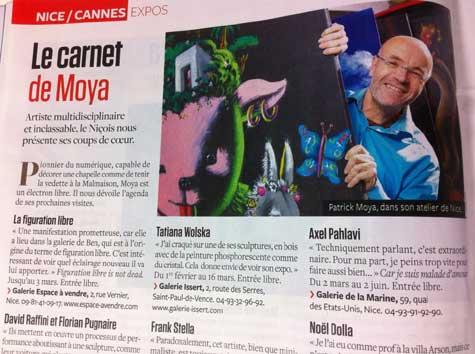 Dans l'express - Patrick Moya donne sa selection des expositions à voir pour 2013 entre Nice et Cannes