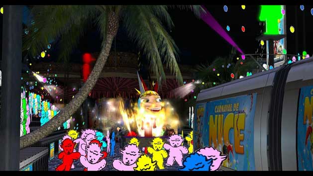 cyber Carnaval de Nice quitte le vaisseau Masséna, dans le ciel