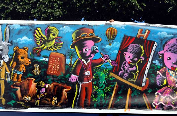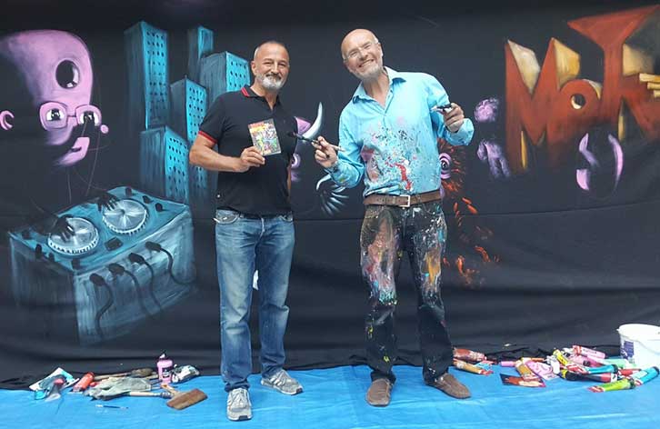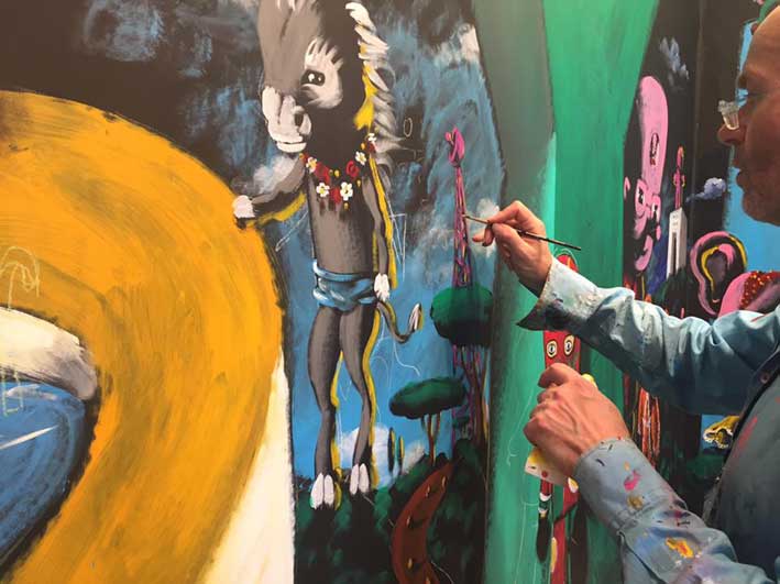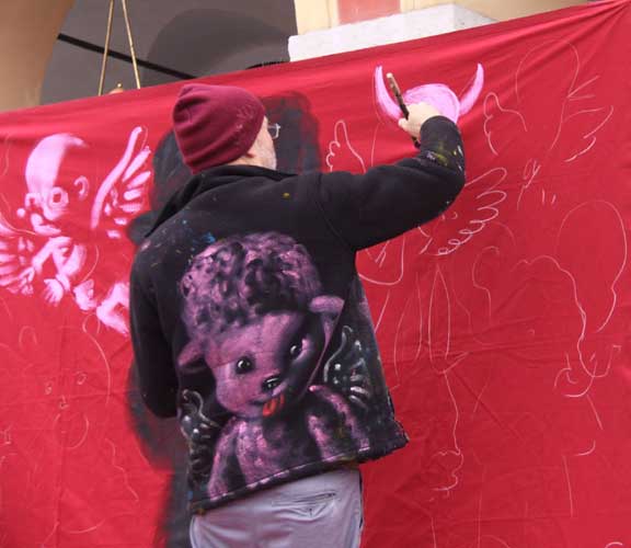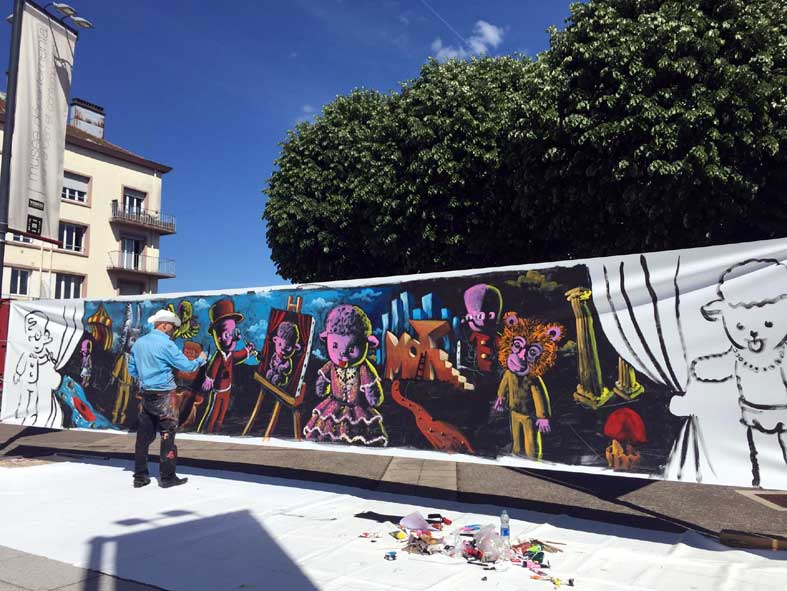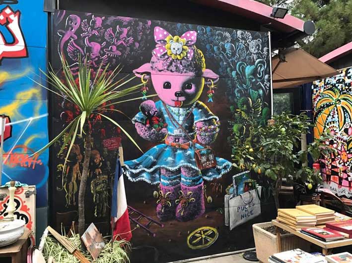 19 janvier Restauration de la peinture murale aux Puces de Nice pour l'inauguration demain matin de ce nouveau spot du street art