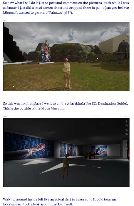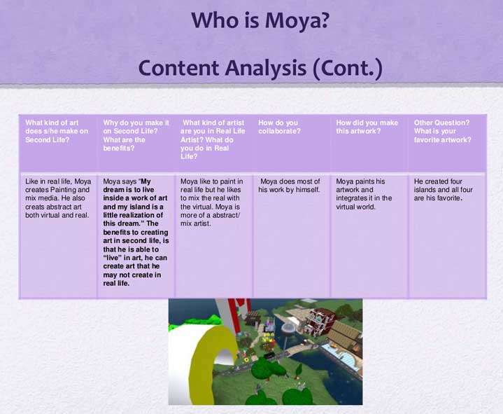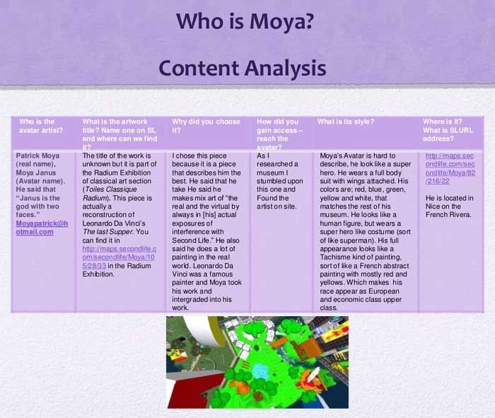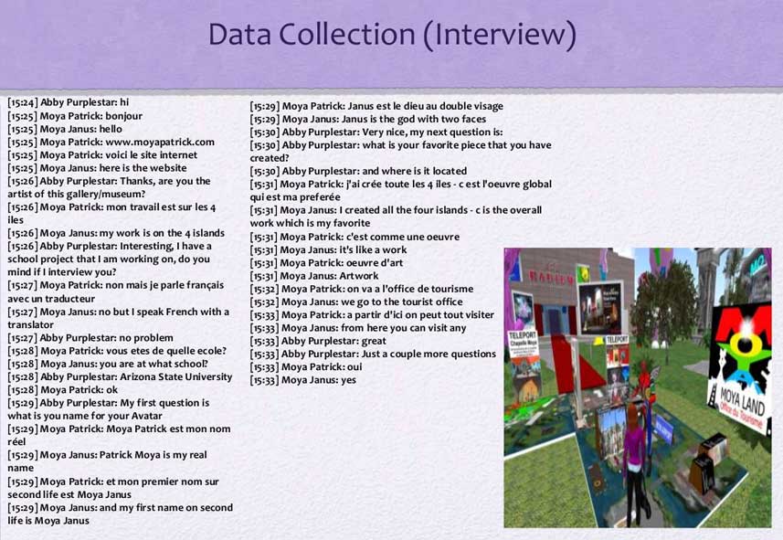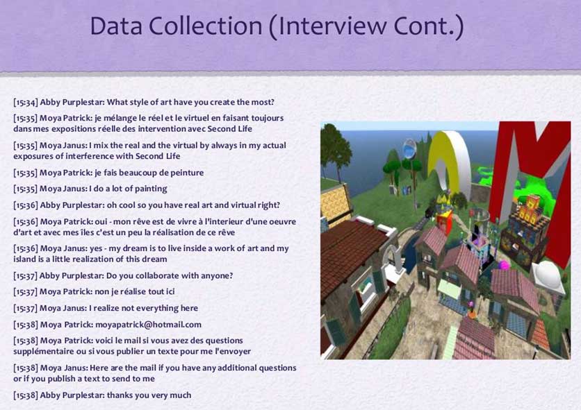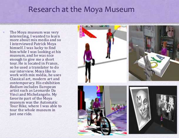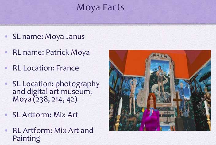 merci à Francesca Caeran (directrice du Moya Hall de Second life)